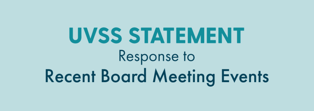 In a recent UVSS Board Meeting, a member of the Board tried to pre-emptively bar a student from speaking during question period. This student attended the board meeting to inquire about proper conduct when interacting with students, specifically in relation to a concerning and hostile interaction with a member of the Board. Due to the behaviour of the board member towards the student, we want to formally apologize.