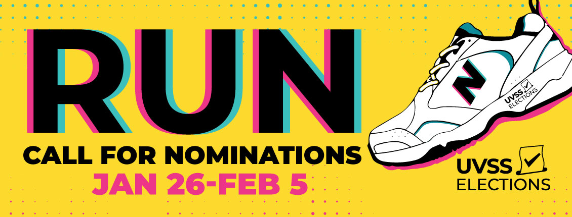 Want to make a difference on campus? Now’s your chance! Nominations for the UVSS Elections are officially open, and you have until 12PM on February 5th to throw your hat in the ring.